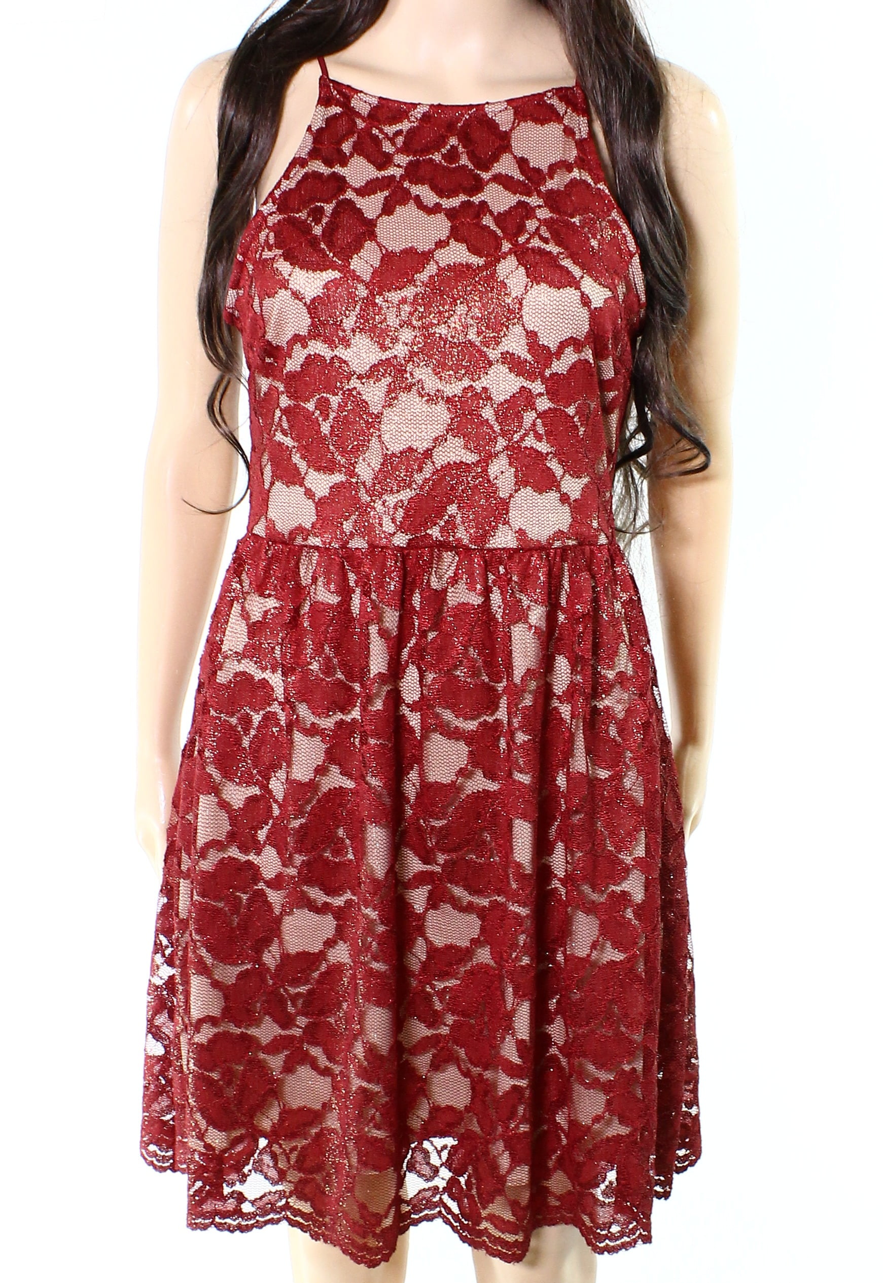 Soprano Dresses Soprano New Red Size Medium M Junior Floral Lace Overlay Skater Dress Walmart Com Walmart Com