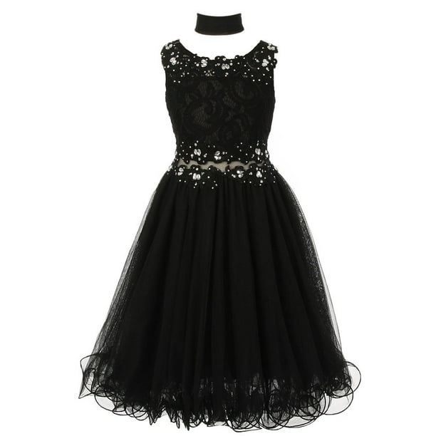 Cinderella Couture Girls Black Lace Mesh Rhinestone Wired Flower Girl Dress 8 20 Walmart Com Walmart Com